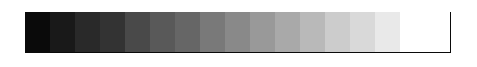 - You should see 16 steps going from almost pure black on the left to white on the right (the rightmost block is twice as wide as the others).